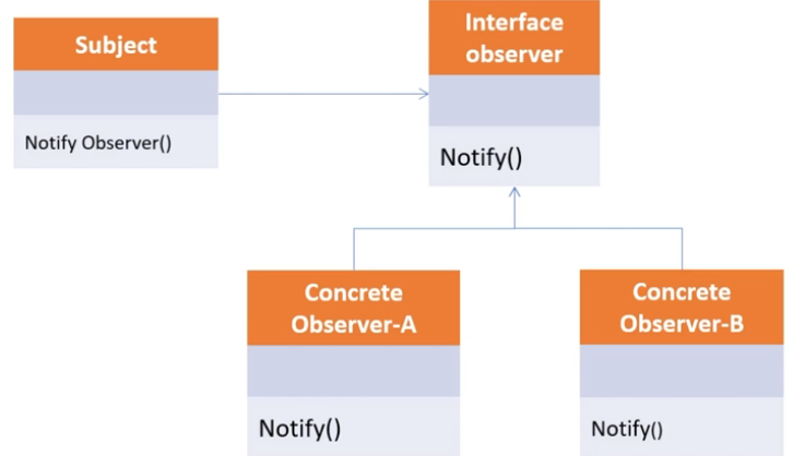 관찰자 패턴은 변화가 일어 났을 때, 미리 등록된 다른 클래스에 통보해주는 패턴을 구현한 것.