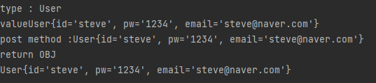 리턴 값이 생겼고 input 들어올 떄 get 값이 들어오고 post 할 시 user 객체의 값이 리턴된다.