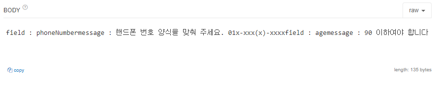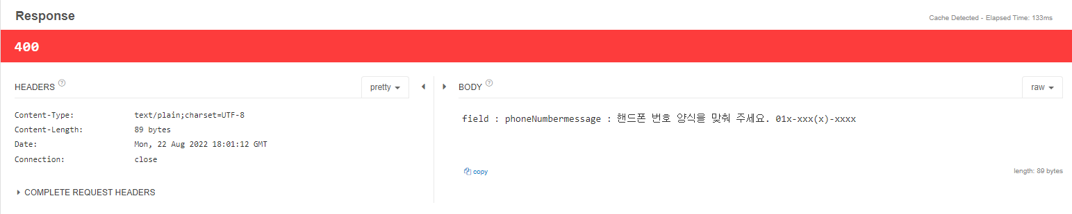 응답 메시지에 바로 오류 출력을 하도록 설정했다.