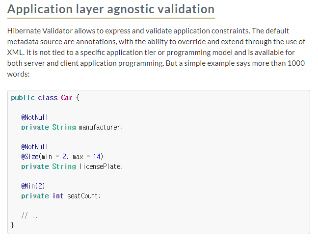 bean validation의 스펙에 대한 정의를 정리해 둔 사이트이다.
