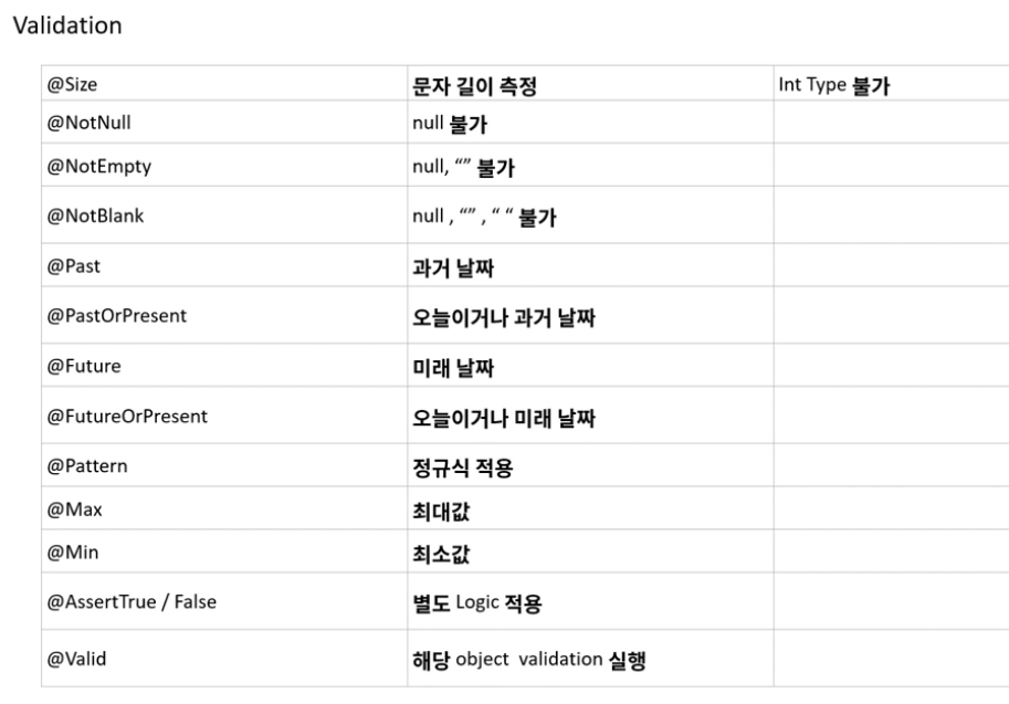 특히 Java에서는 null 값에 대해서 접근 하려고 할 때 null pointer exception이 발생 함으로, 이러한 부분을 방지 하기 위해서 미리 검증을 하는 과정을 Validation 이라고 한다.