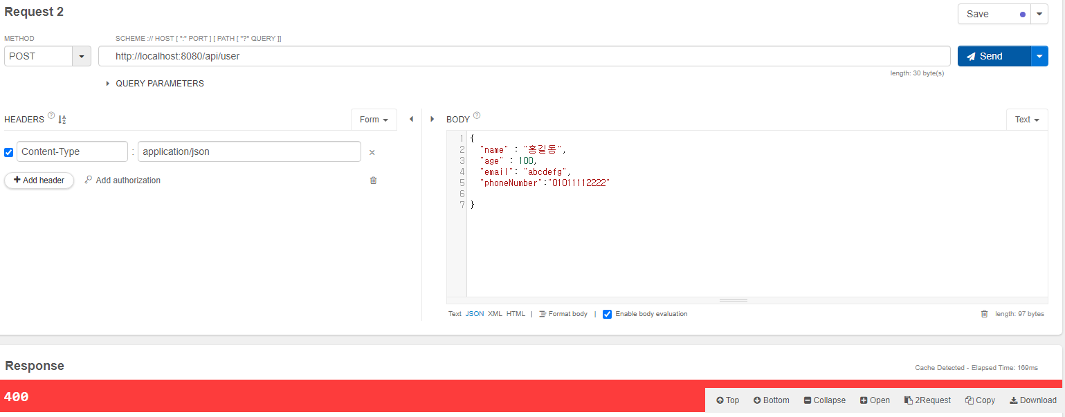 어노테이션을 사용하면 @Vaild 어노테이션을 달아줘서 그 객체 안에 어노테이션을 검사하고 그 값을 검증하고 맞지 않는다면 에러가 나온다.