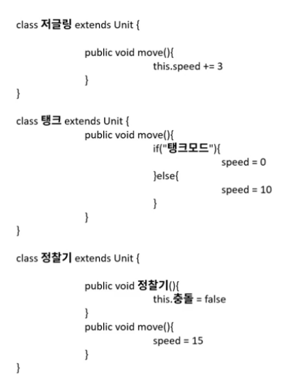 4. 유지보수성 향상: 각 객체마다, 자신의 메소드를 정의 하고 있다면, 코드 수정에 많은 작업이 필요, 상속을 한다면 일관된 형태로 작성이 가능.